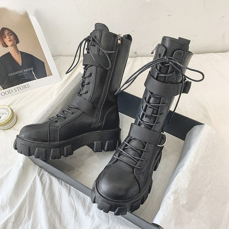 Ashore Punk Biker Shop: Biker High Platform Boots Women Biker Boots 2023 Hip British Short Boots Ladies Ankle Boots Fashion Boots