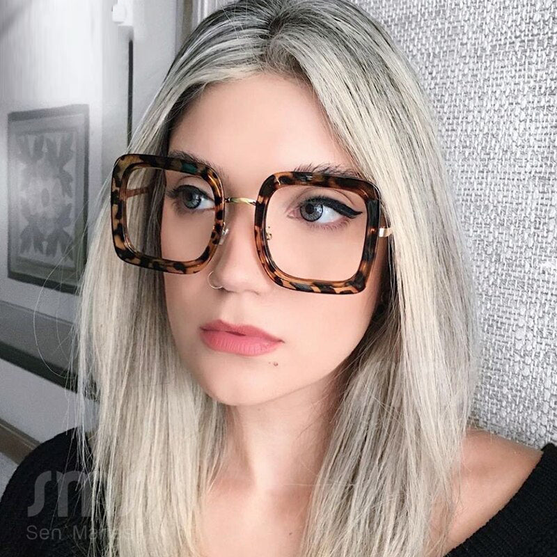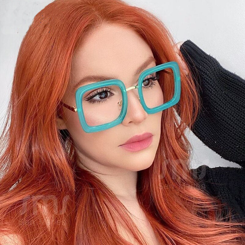 Women Anti Blue Light Computer Glasses Oversized Square Eyeglasses Eyewear Optical Frames UV400