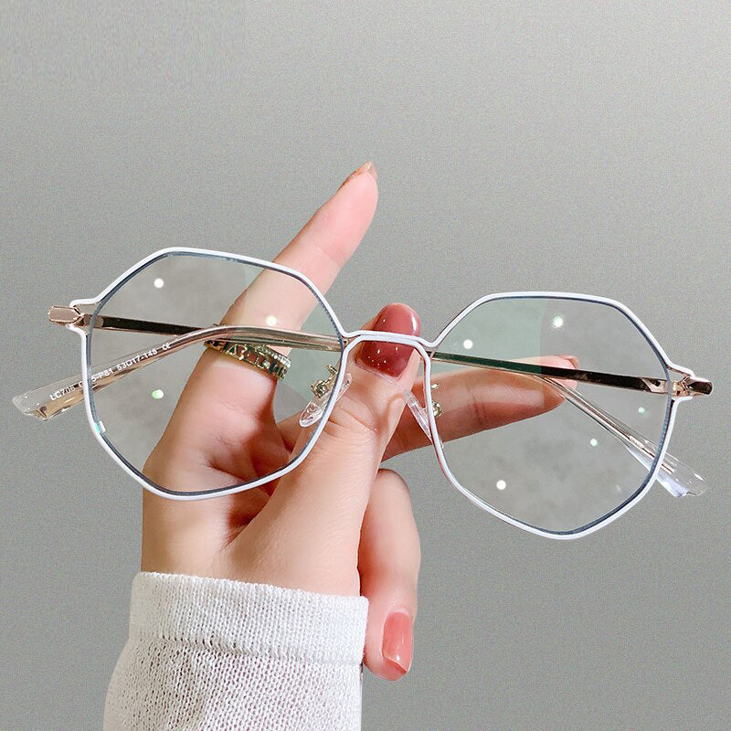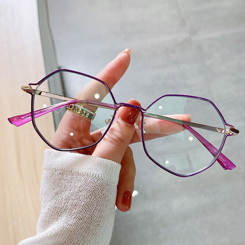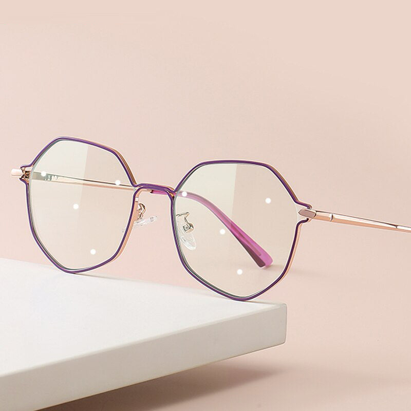 Women's Blue Light Blocking Glasses Female Hollow Flat Metal Polygon Eyeglasses Frame Transparent Lens Reading Eyewear