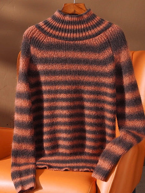 Half turtleneck Mens Sweater Mohair men's winter thickened striped knitted cardigan sweater