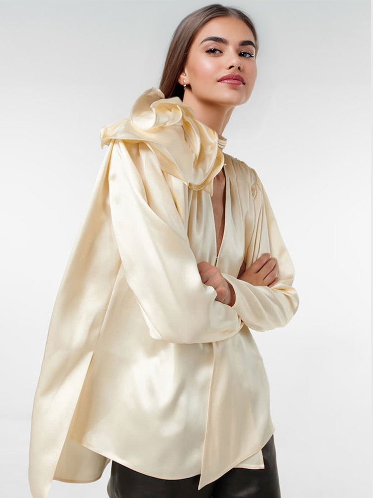 ASHORE blouse is a luxurious and elegant piece with the following details: