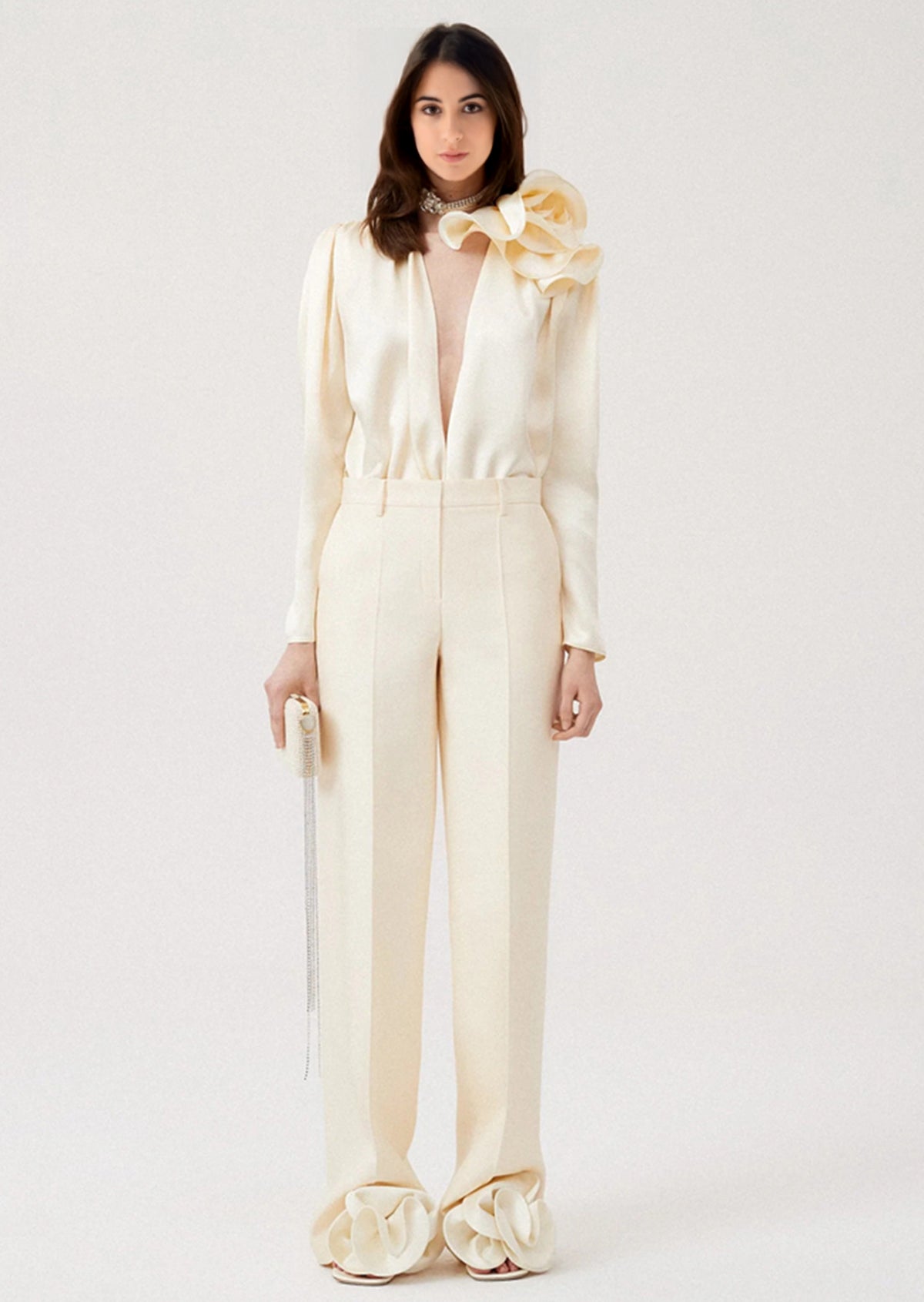 This blouse exudes a luxurious and modern aesthetic, perfect for a sophisticated evening look or a stylish formal outfitASHORE