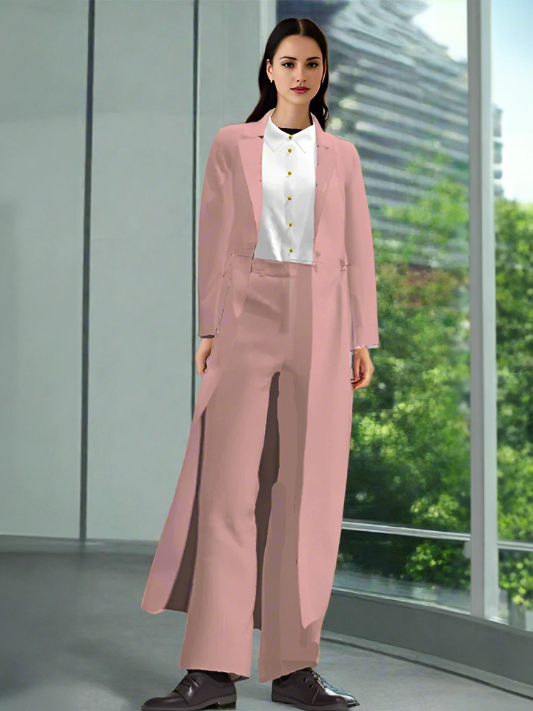 Women's Two-Piece Set Wedding Suit Long Coat + Straight Pants
