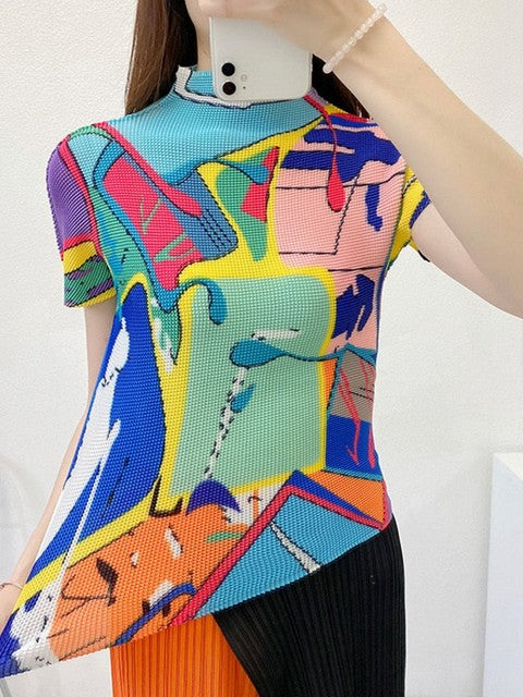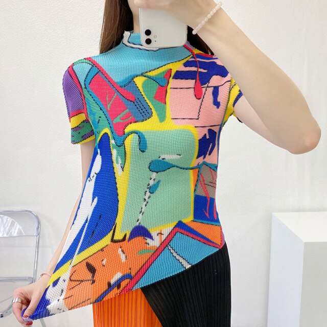 Ashore Ripple Stretch Short Sleeve T's Pullover Tops Loose 2022 Summer Fashion Beach Bikini Cover Ups Elastic Tops Wild Loose Casual Style 2022 New Summer