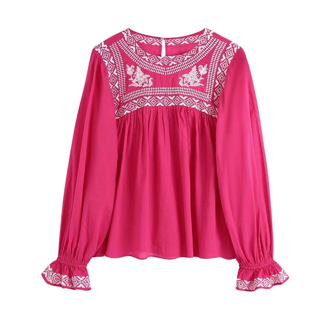 • Ashore Shop Womens Spring 2023 Embroidery Blouse Boho Embroidery Shirts Ashore Shop 2023 Women Sweet Contrast Geometric Embroidery Casual Smock Blouse