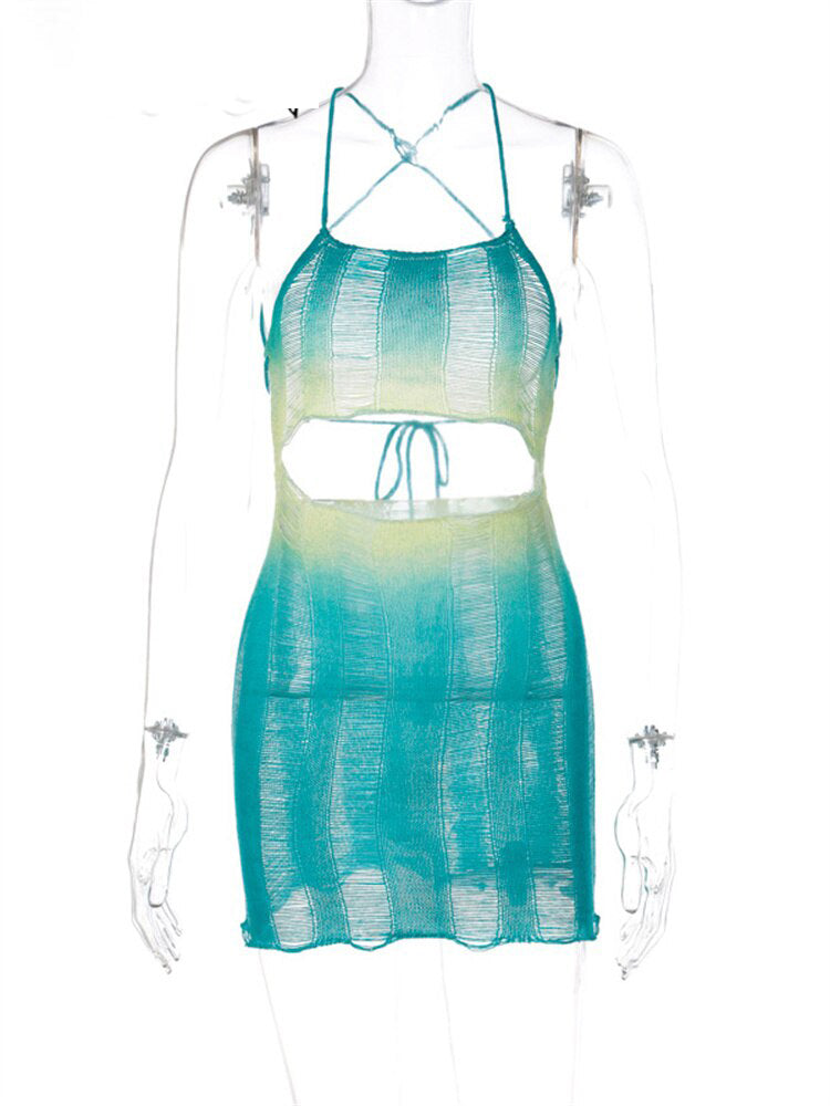 Ashore Shop Knitted Hollow Out Halter Neck Backless Bodycon Mini Dress Summer