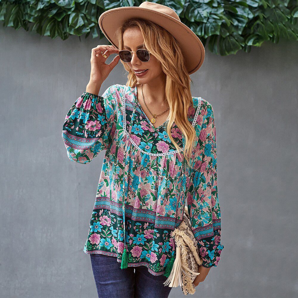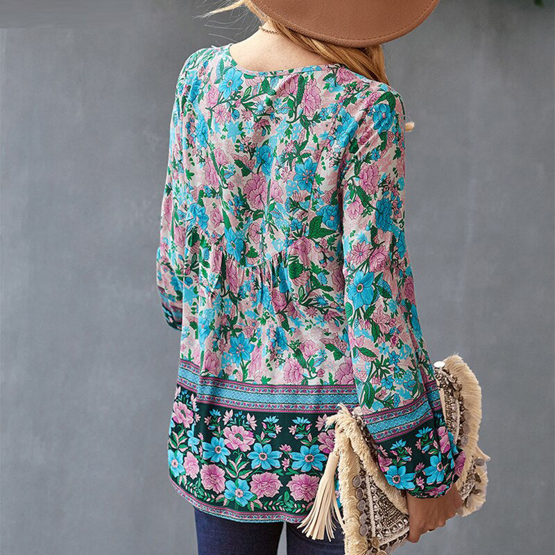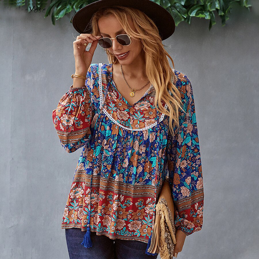 Ashore Shop Boho Floral Printed Blouse Shirt Spring Autumn Women Blouse