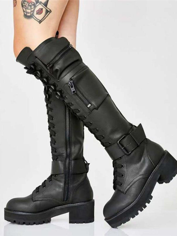 Ashore Biker Shop Platform Solid Street Style Motorcycle Boots for Women