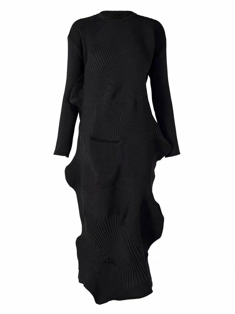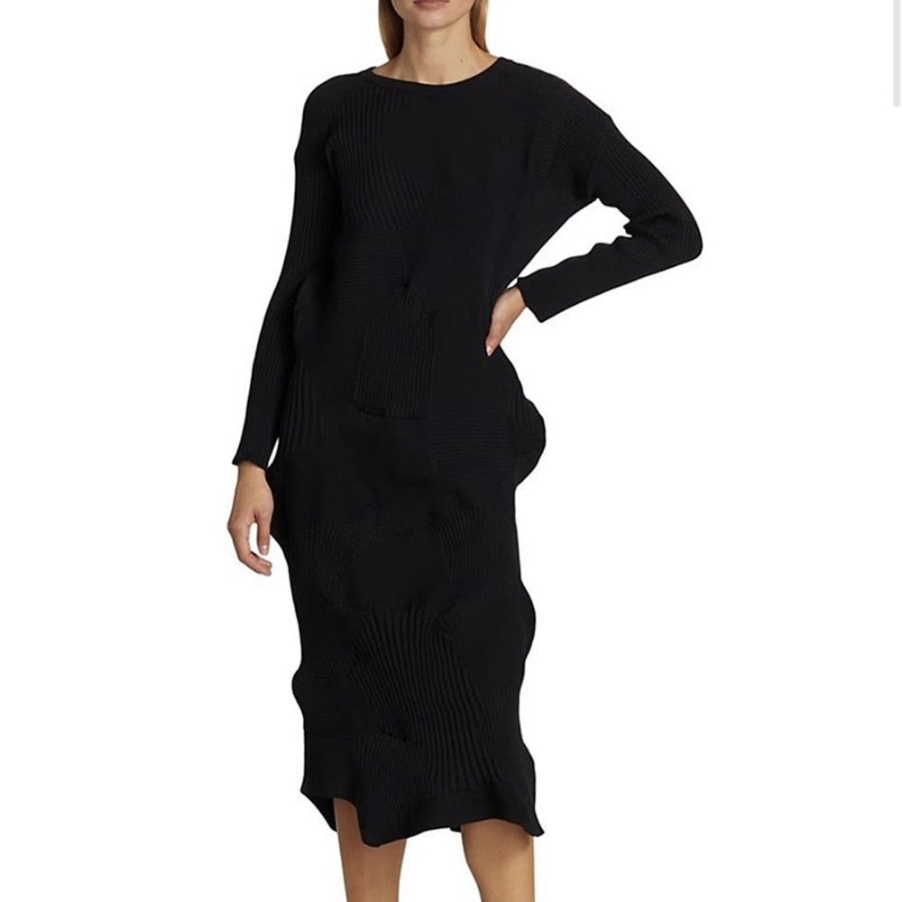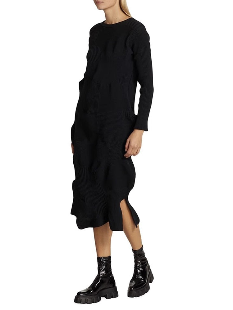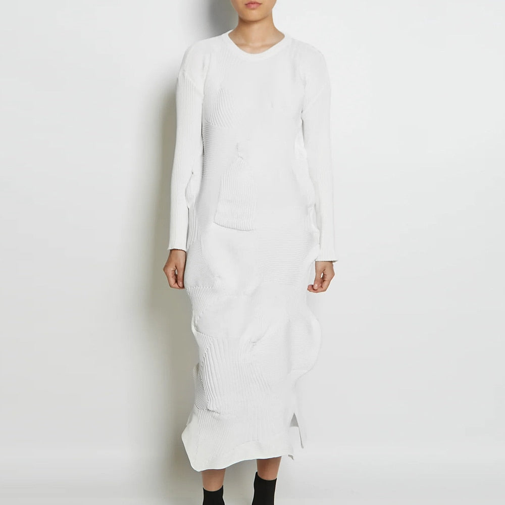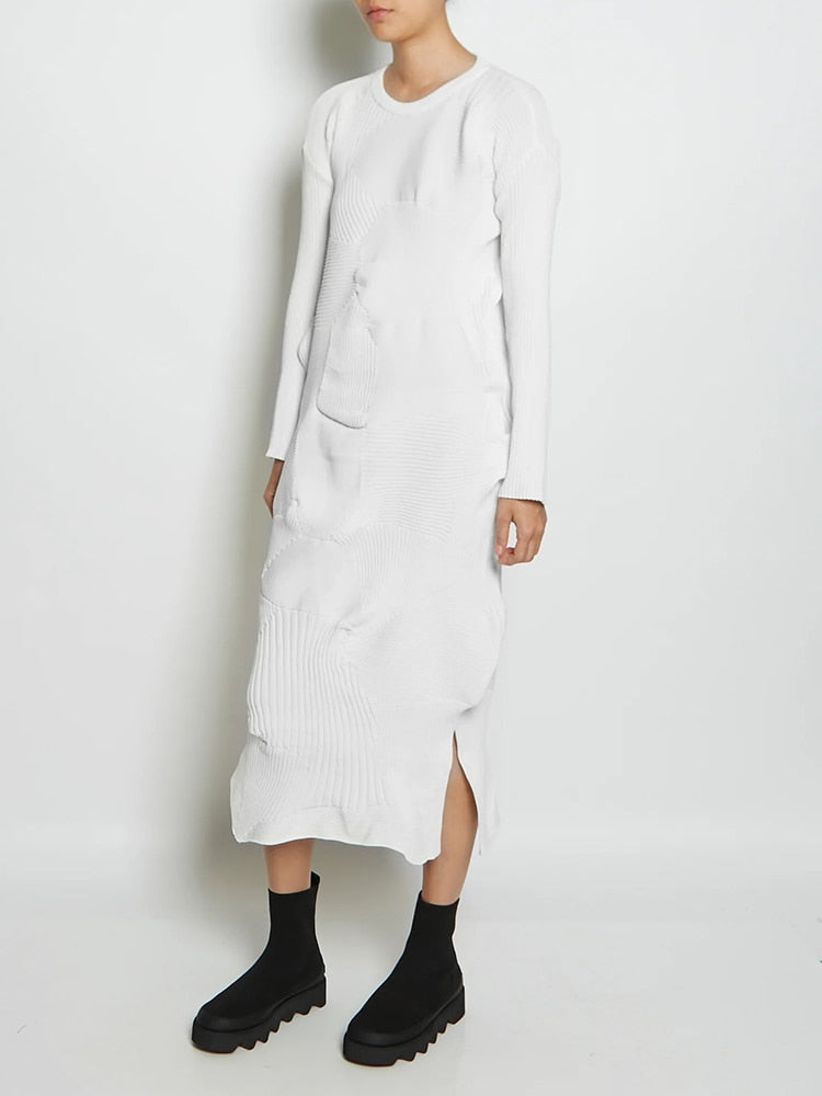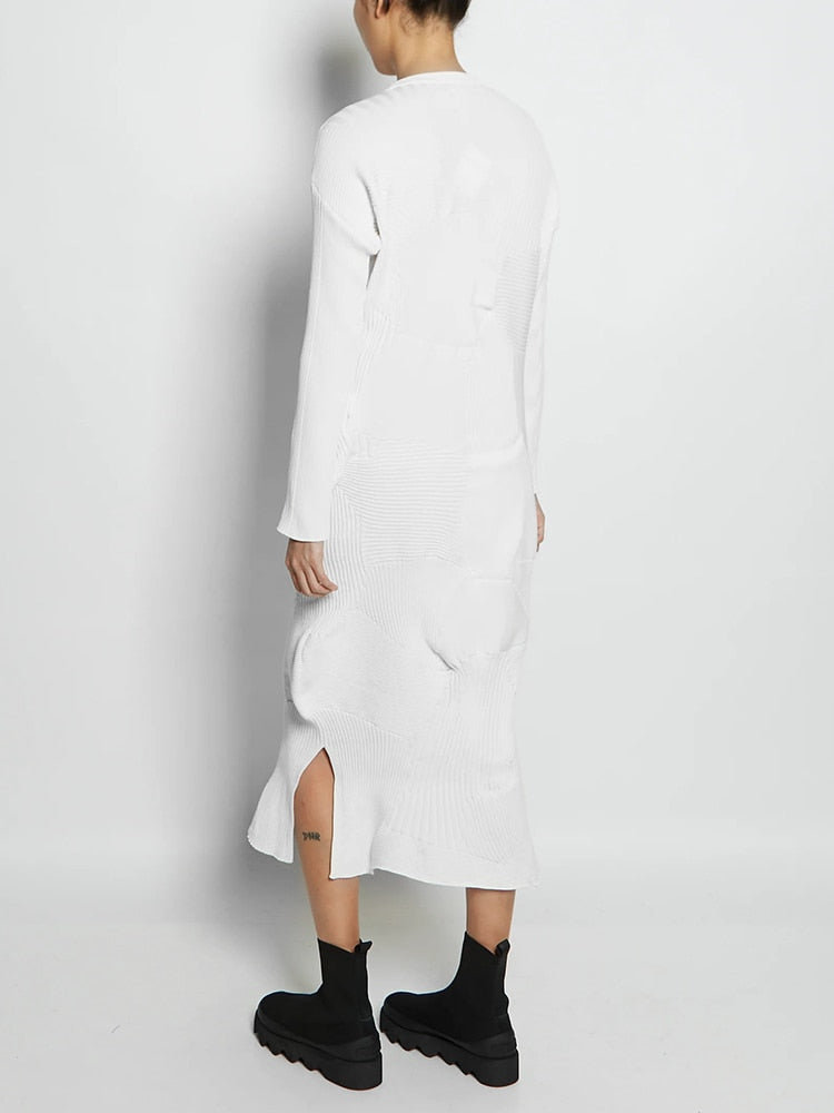 Ashore Shop Asymmetrical Knitting Dress For Women Round Neck Long Sleeve High Waist Split Slimming Dresses Female Fashion Clothingr