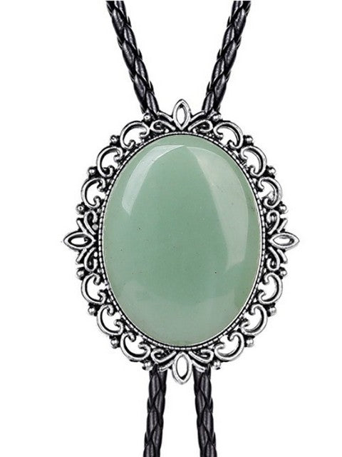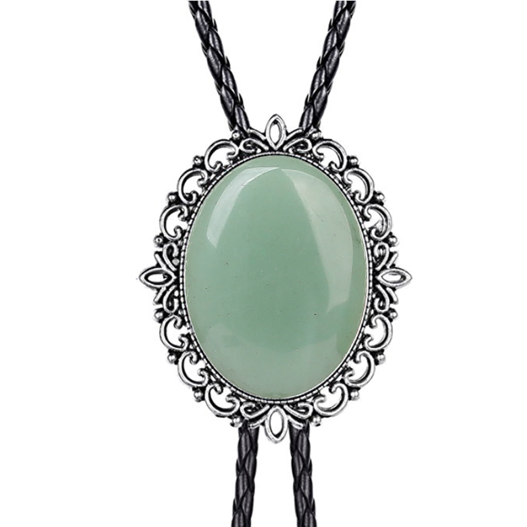 Collar de cordón de cuero con corbata de bolo de esmeralda con patrón hueco Corbata de bolo de vaquero occidental americano Corbatas de lazo para hombres y mujeres