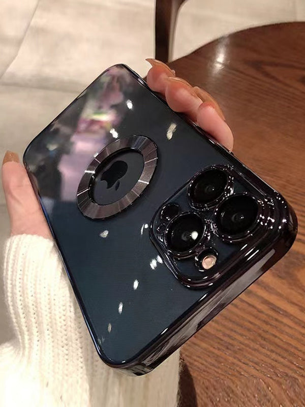 Funda con orificio para el logotipo de revestimiento transparente para iPhone 11 Pro Max, funda protectora para cámara para iPhone 12 13 14 Pro Max Xs X 7 8 Plus
