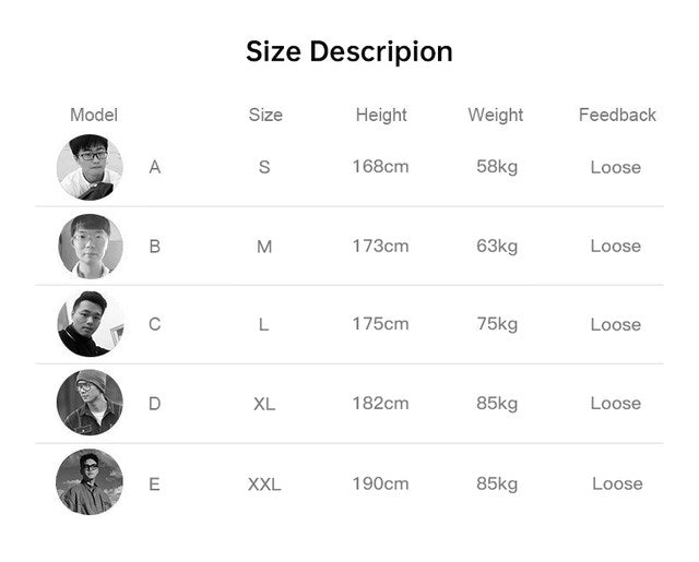 Tabla de tallas de la tienda ASHORE para abrigos impermeables para hombre