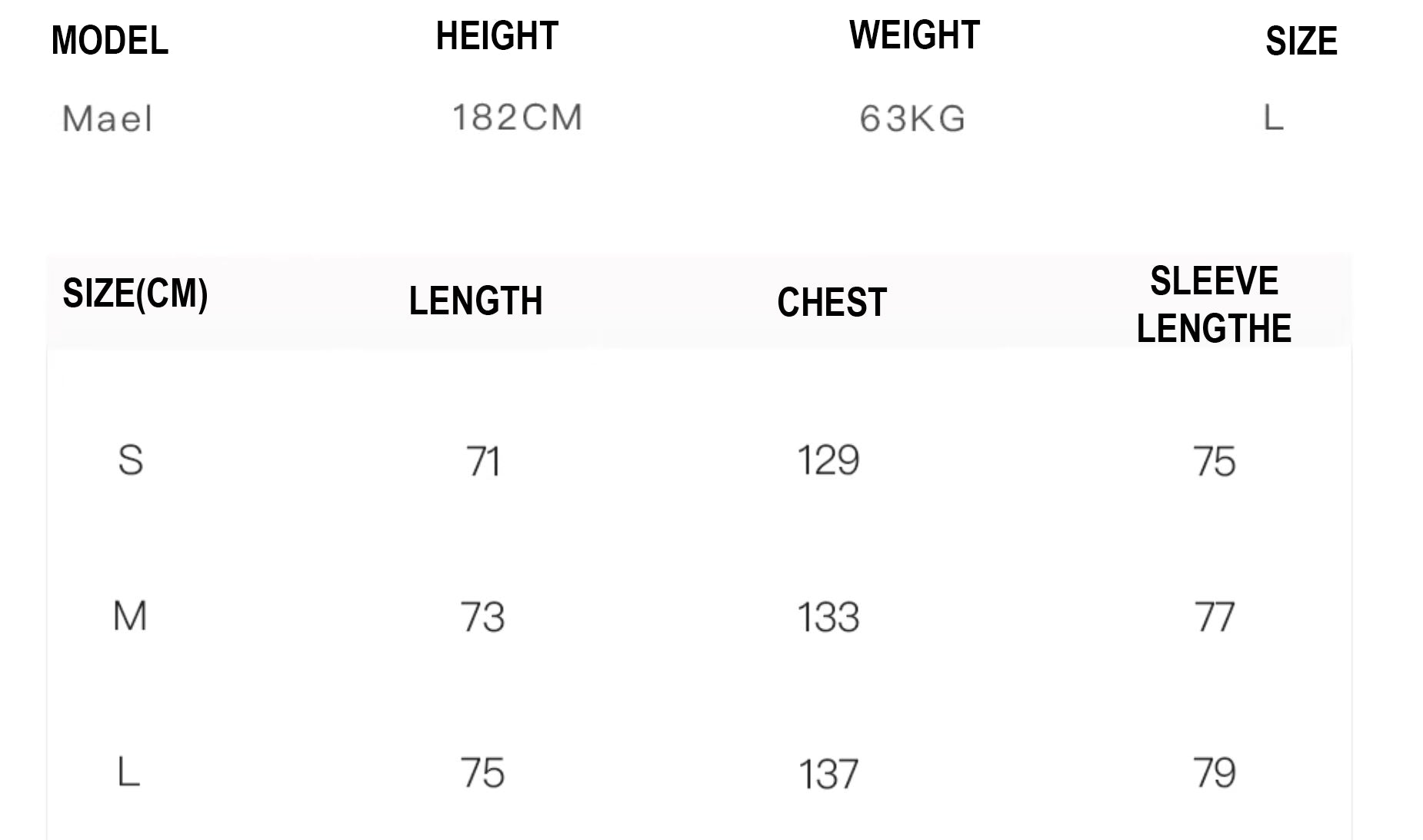 Tabla de tallas de chaquetas 3 en 1 de primavera para hombre