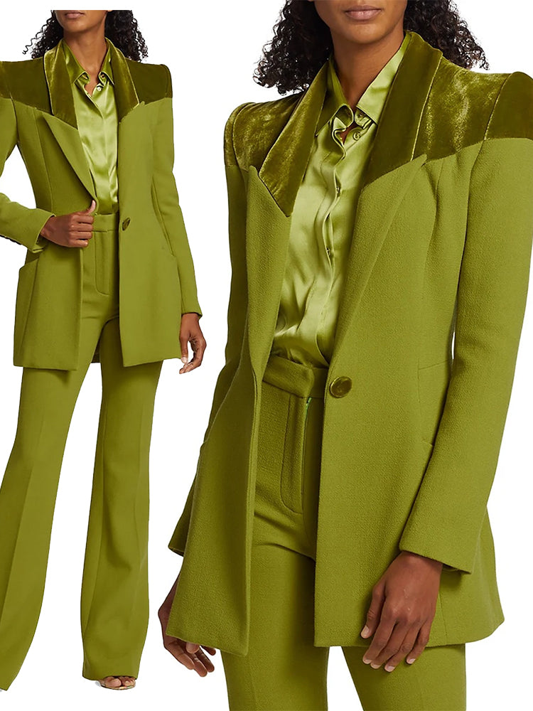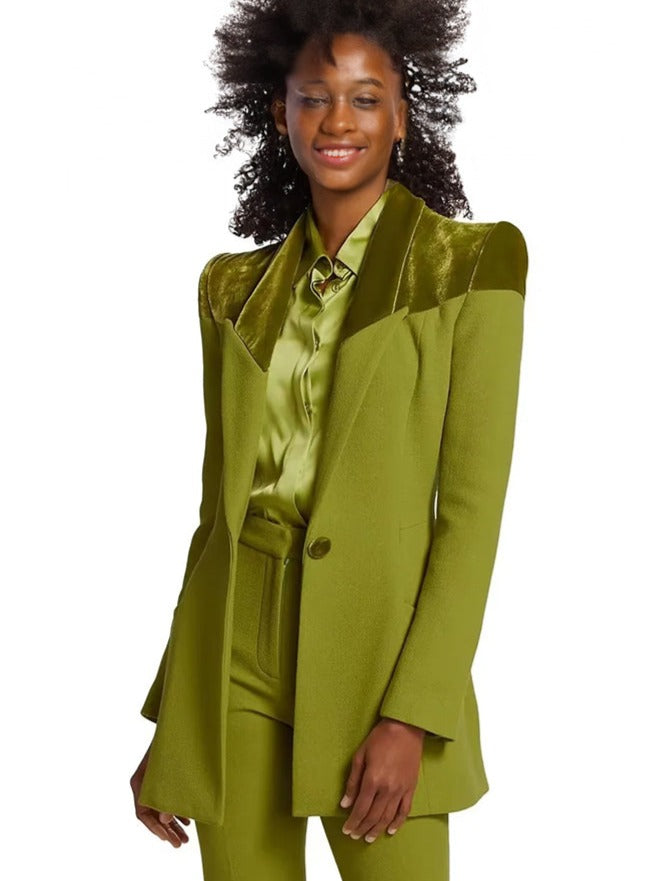 TAILOR SUITE Custom Green Women Suits Pant Set Blazer+Trousers Stitching Velvet Mother Guest Wedding Tuxedo Office Lady Formal Prom Dress Customize