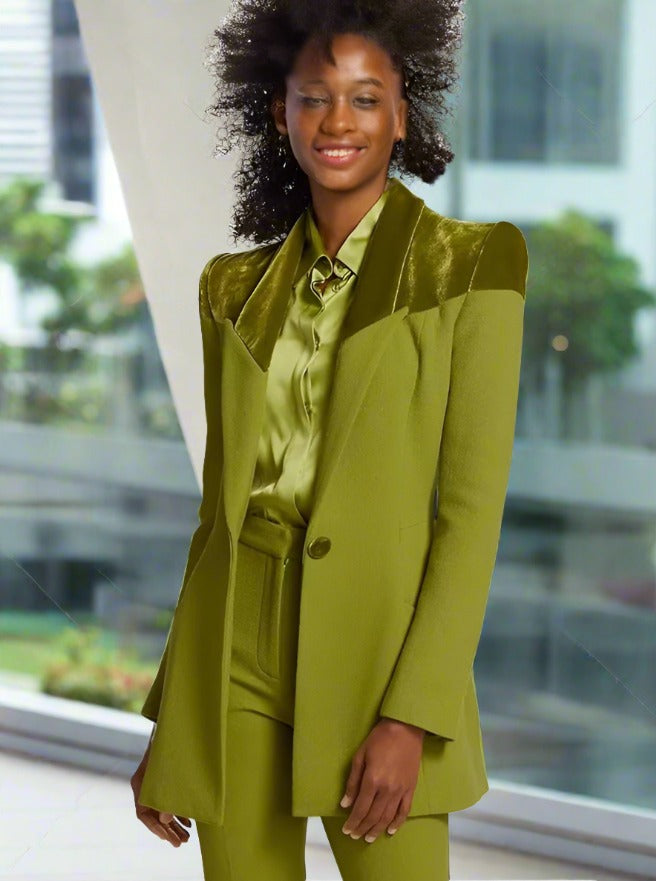 Ashore Shop Custom Green Women Suits Pant Set Blazer+Trousers 2 Piece Sets