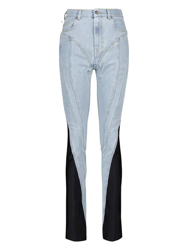Colorblock Slim Stretch Denim Pencil Pants Women High Waist Casual Slim Jeans Trousers