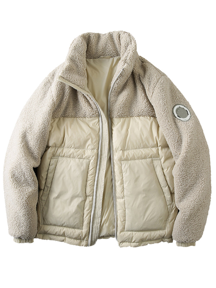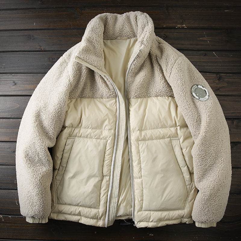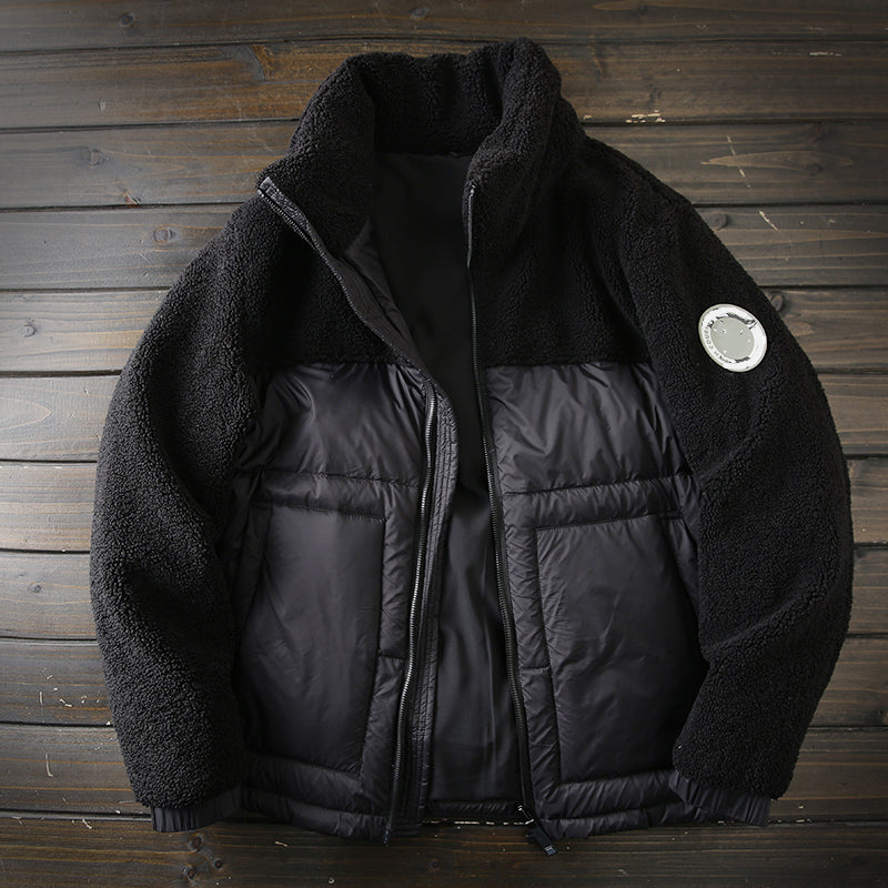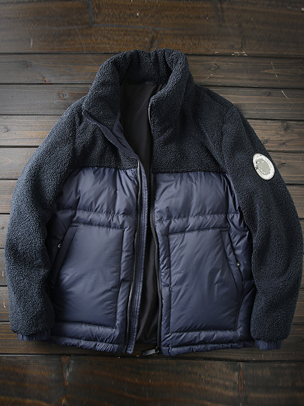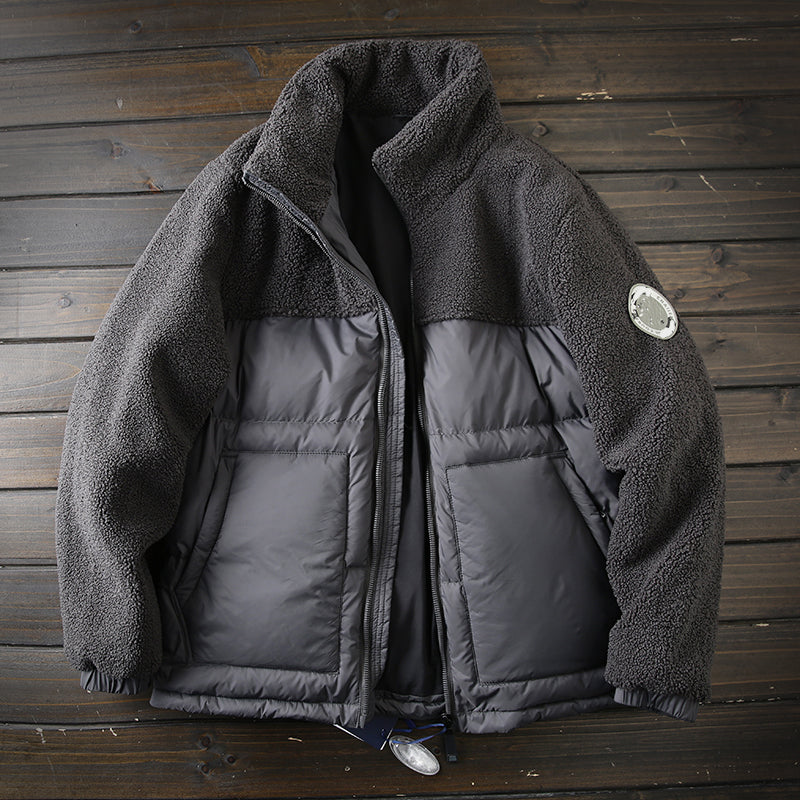PLUS SIZE Mens Winter Down Coat winter men's warm polar fleece stitching stand collar down jacket jacket