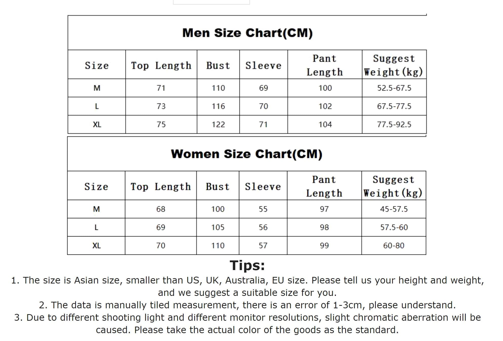 Please See Images for the Size Chart