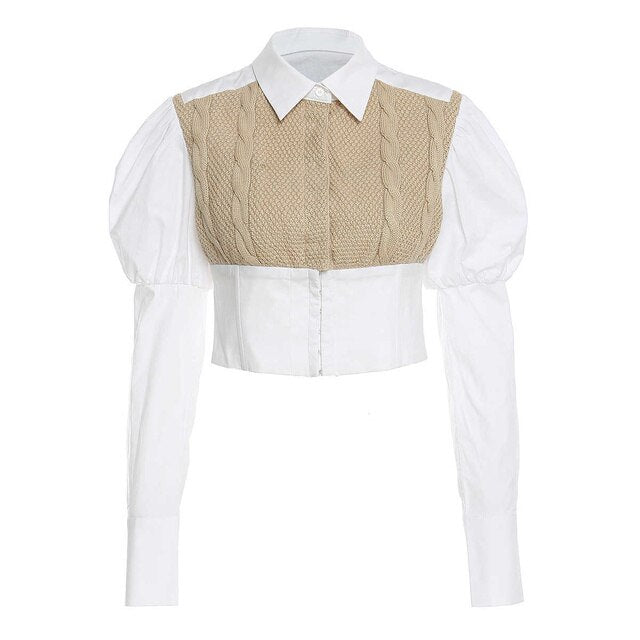 Ashore Shop: Autumn Womens Blouse Cable Knitted Twist Patchwork Turn-down Collar Shirt Button Fake Two Shirt Female Autumn 2022