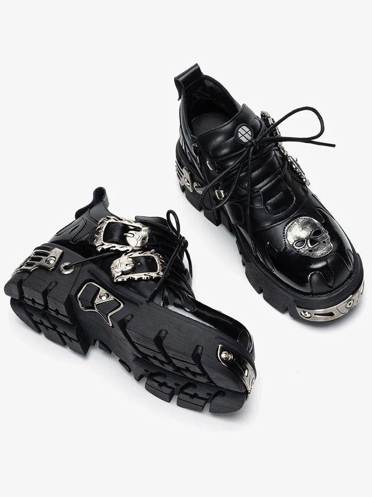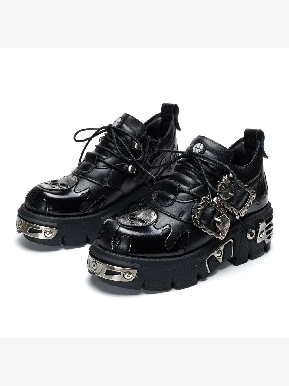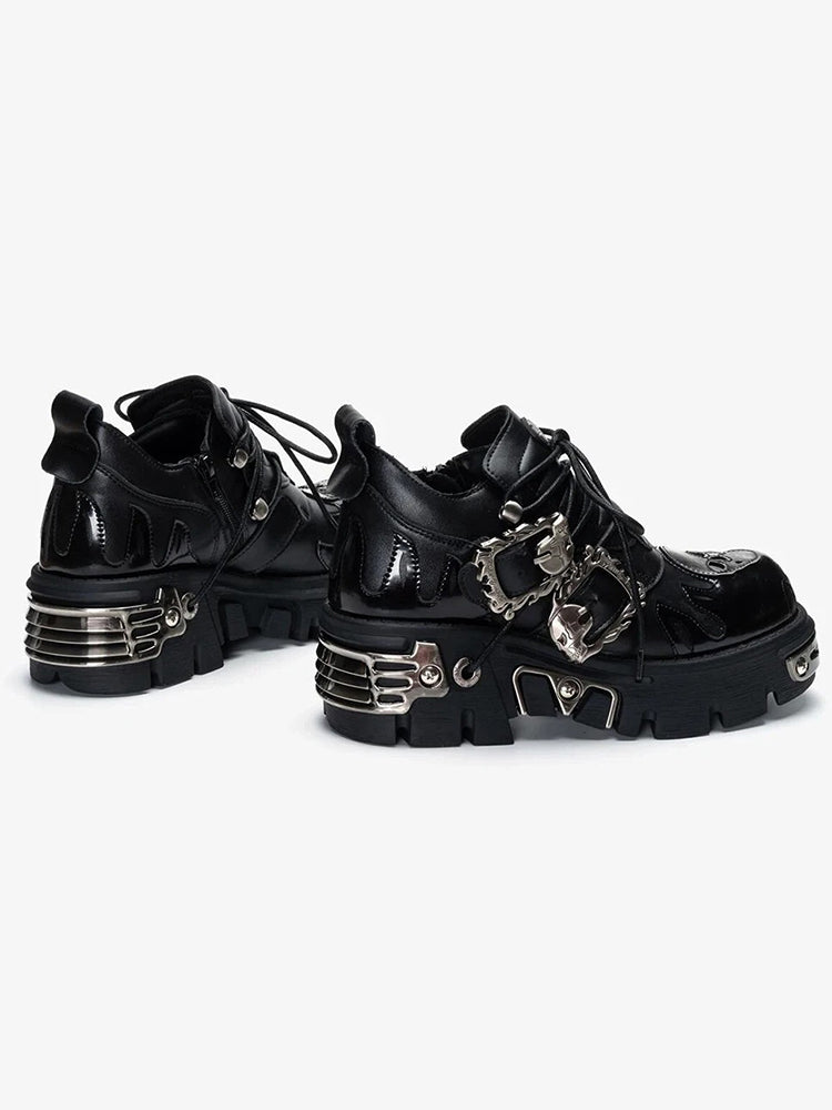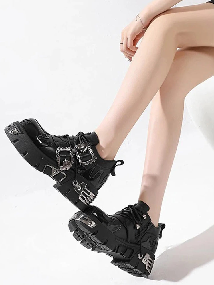 Womens Shoes Mid-calf Boots Female Motorcycle Rivet Buckle Platform