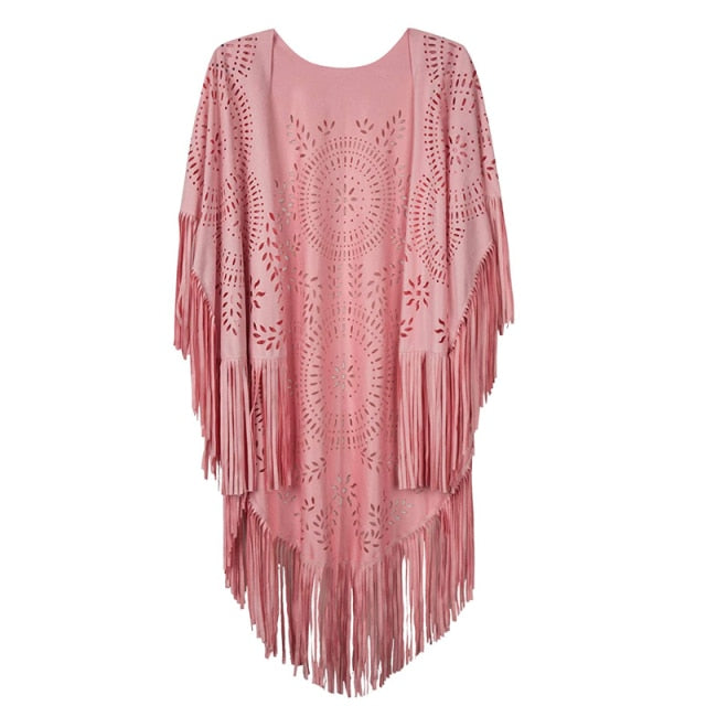 Fashion Summer Long Women Cape Shawl Open Poncho Elegant Suede Tassel Retro Simple Multicolor Dropshipping