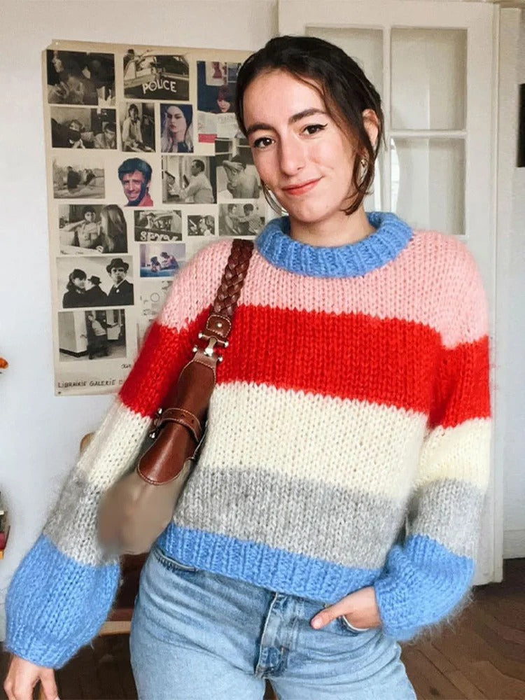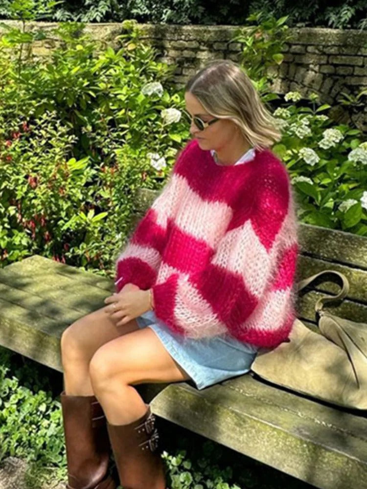 Mohair Sweaters for Women Knit Oversized Striped Hollow Out Sweater