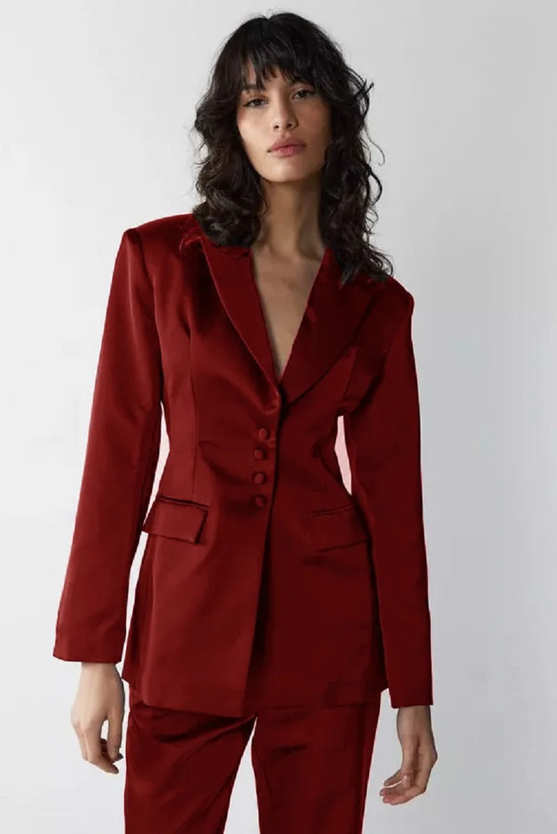 Tailor Suite Women's Satin Classic Vintage Single-breasted Two-piece Pant Suit