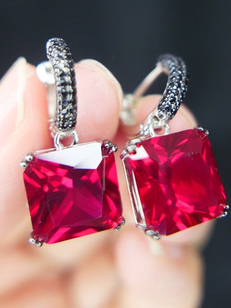 • Ashore Shop Cushion Cut Lab emerald Ruby Diamond Hanging EarringsWith Black /Red stones Fine Jewelry wholesale