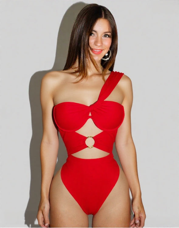 ASHORE asymmetric one-piece swimsuit is a bold and eye-catching statement piece, designed in vibrant, bright colors that radiate summer energy. The unique asymmetrical cut adds a modern, fashion-forward edge, highlighting the shoulders and collarbone while offering a flattering fit. Perfect for poolside lounging or beachside fun, this swimsuit effortlessly combines style and confidence with a playful, standout look.