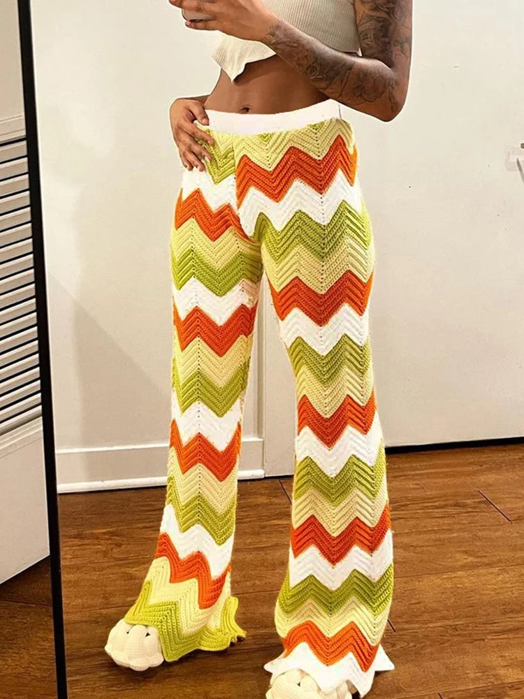- Ashore Shop Casual Elastic High Waist Contrast Striped Flare Trousers Female Street Leggings Knit Pants Tropical Vacation Pants