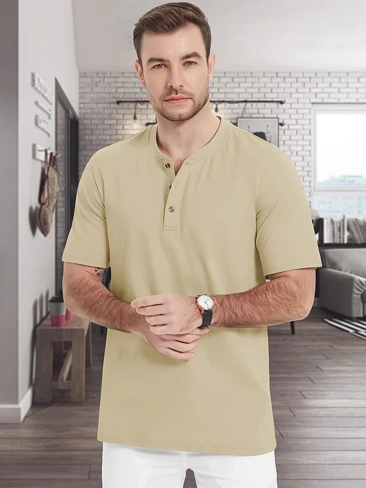 Henry Neck T-shirt Males : Summer Henry T-shirt Males