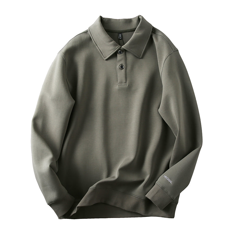 Ashore Shop men’s long-sleeve top is a refined blend of casual comfort and smart style. Made in a muted olive green hue, it features a structured polo-style collar with a three-button placket, giving it a polished look while maintaining a relaxed feel. The fabric appears smooth and medium-weight, offering both warmth and breathability. Ribbed cuffs and a fitted hem create a clean, tailored finish, while the straight cut through the body provides ease of movement. Combining the classic elements of a polo with the coziness of a sweatshirt, this versatile piece works effortlessly for both casual outings and elevated everyday wear.