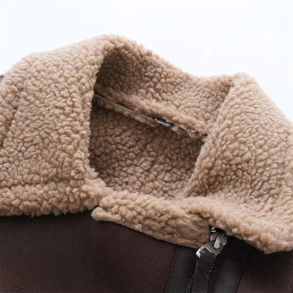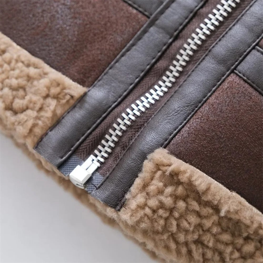 Ashoreshop Women Winter Thick Faux Leather Fur Sheepskin Coats
