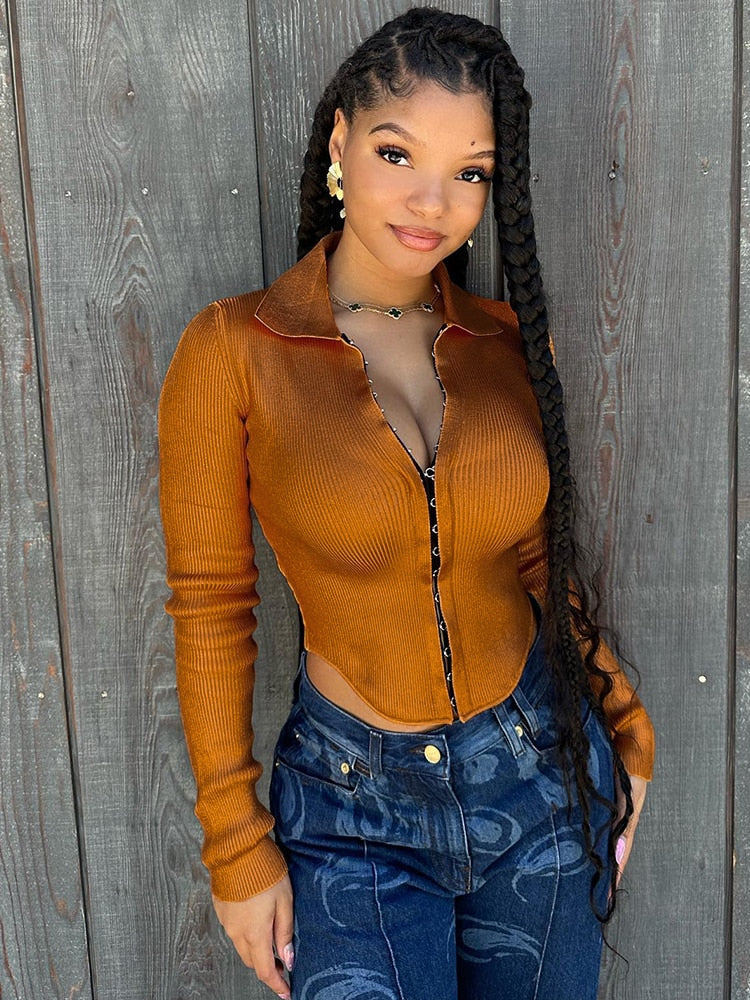Ashore Shop Metallic Shiny Irregular Solid Women Cardigan Turn Down Collar Buttons Skinny Stretchy Autumn Trendy High Street Y2K Basic Crop Tops