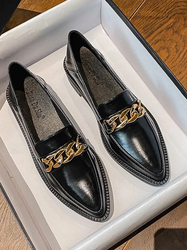 Ashore Shop Plus Size 42 Flat Shoes Woman Loafers 2023 Leather Flats Chains Sneakers