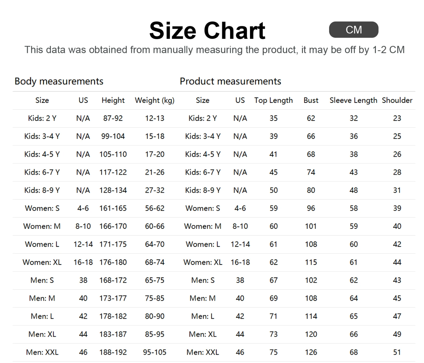 Size Chart of Family Christmas Sweater Matching Deer and Snowflake Long-sleeve Knitted Sweater