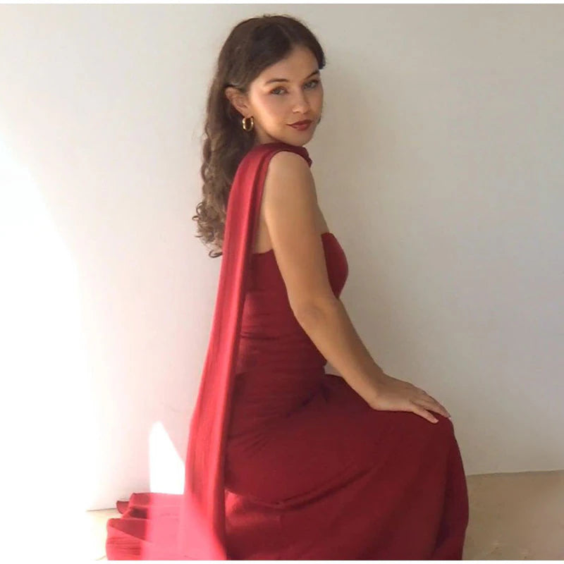 Ashore Shop Red Knitted Strapless Midi Dress With Scarf Sexy