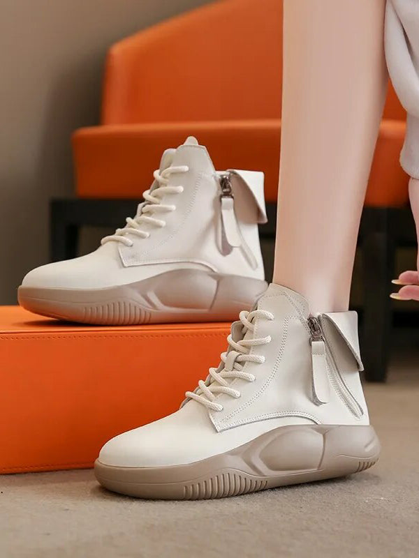 Ashore Shop Thick Soled Nude Boots for Women In The Spring Autumn of 2022 British Style Academy Lace Up Zipper Decorated Thin Short Boots