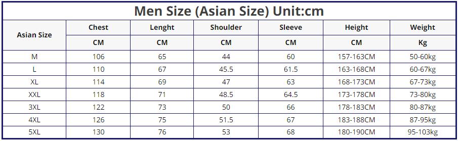 Size Chat of Ashore Shop Men's New UV Sun Protection Skin Thin Jackets