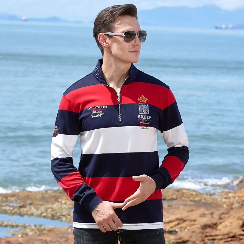 Ashore Shop Mens Polo Long Sleeve Striped Thickened Quality Shirt Free Shipping: 7-15 Business Days Applicable Season : Autumn And Winter