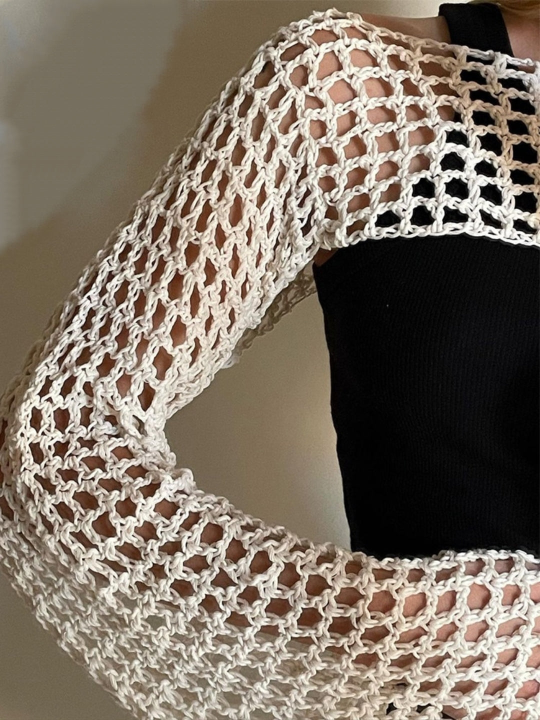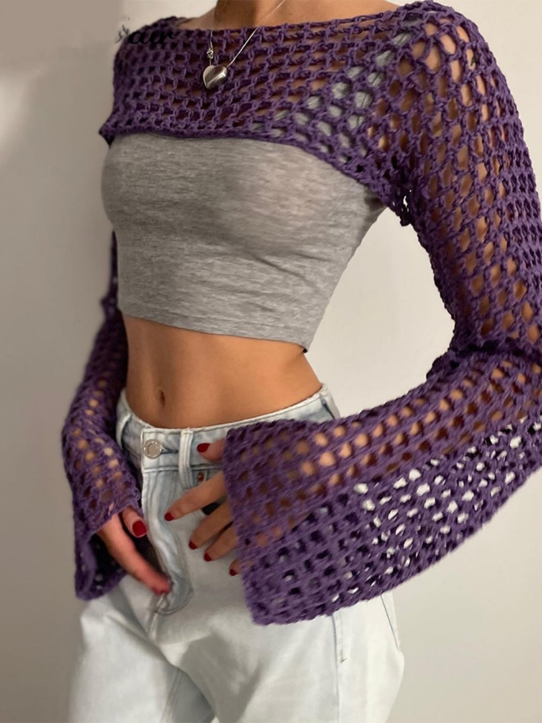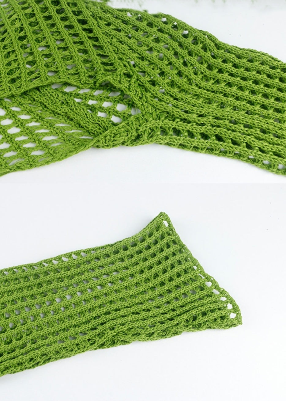 Summer Green Long Sleeve Smock Knitted Crop Top Women Y2k Beach Sexy Backless