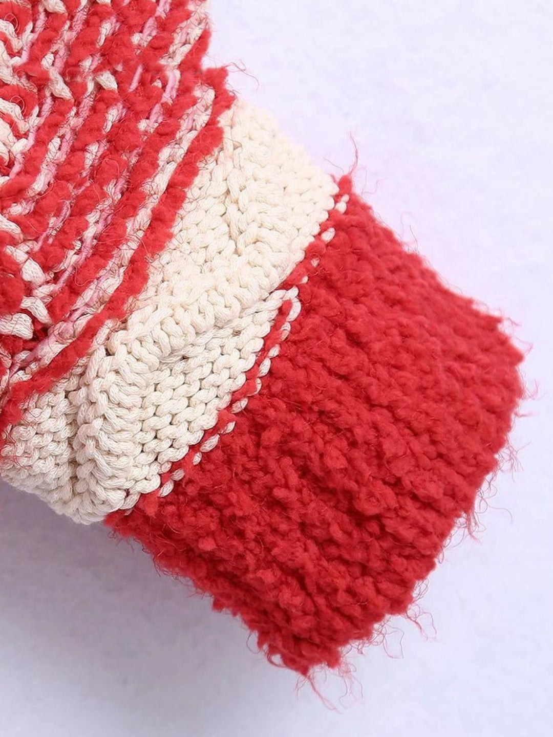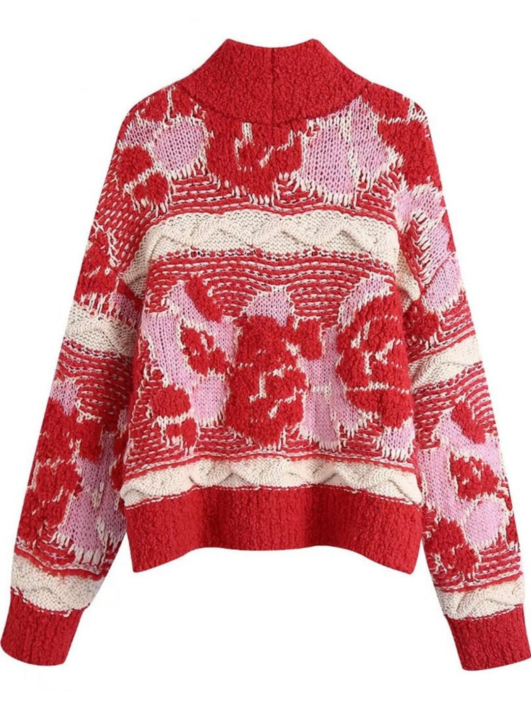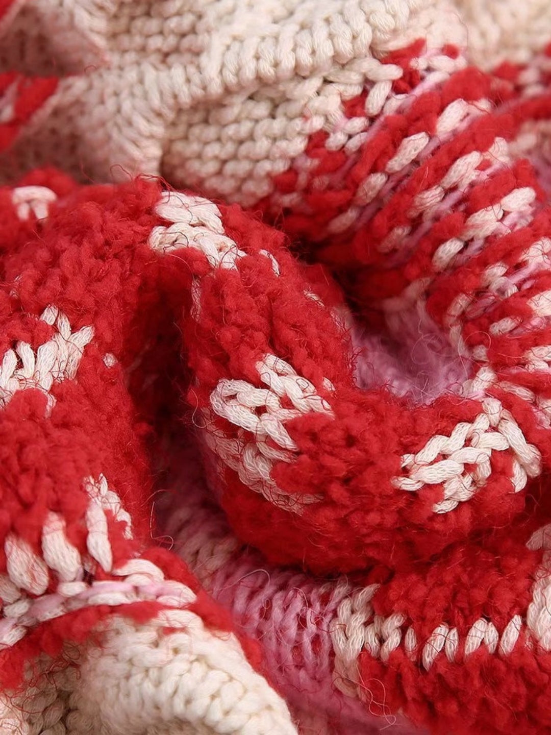 Women Winter Jacquard Knitted Short Red Sweater Pullover Loose Sweaters Jumper