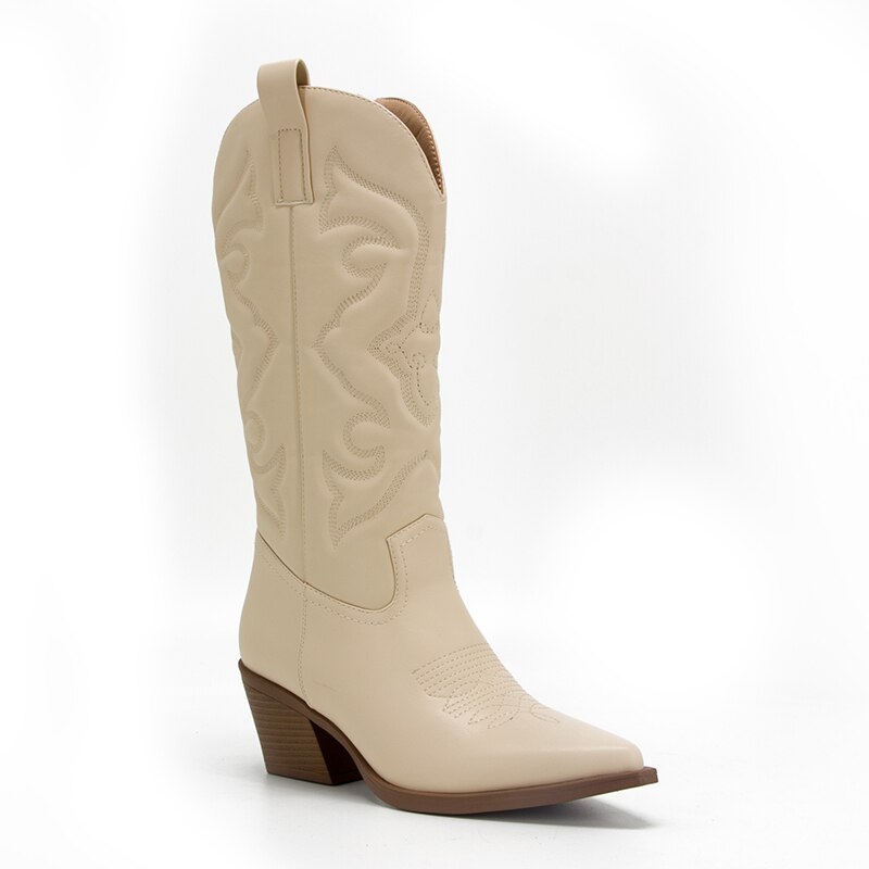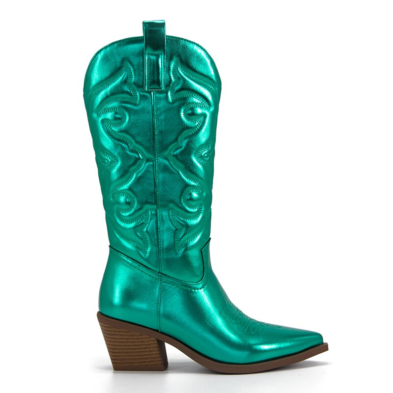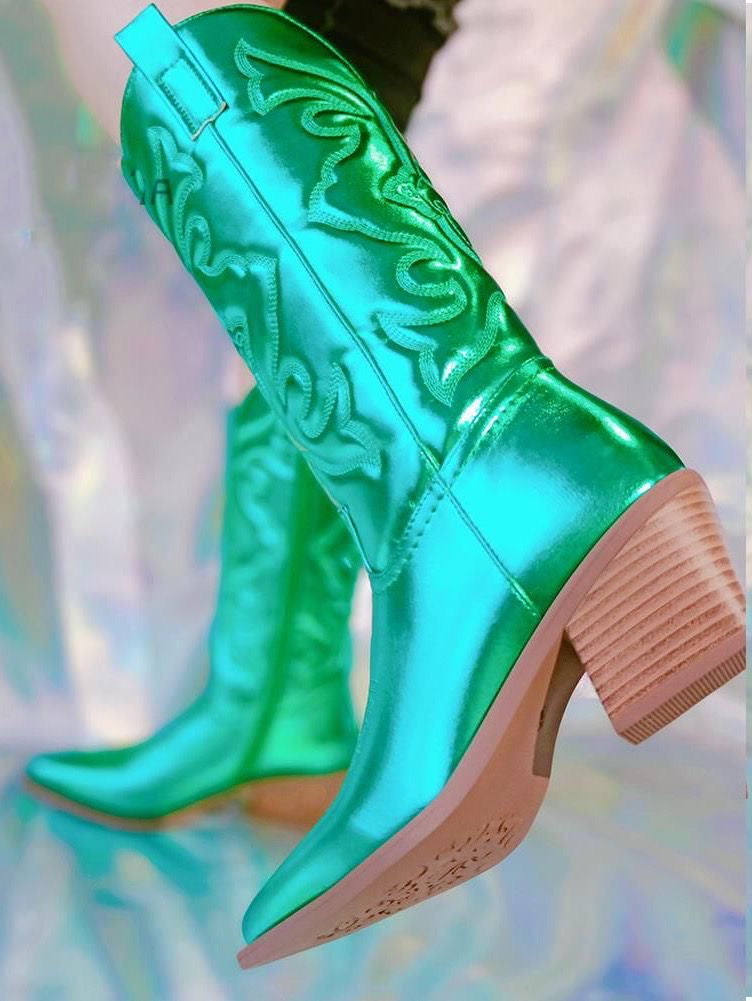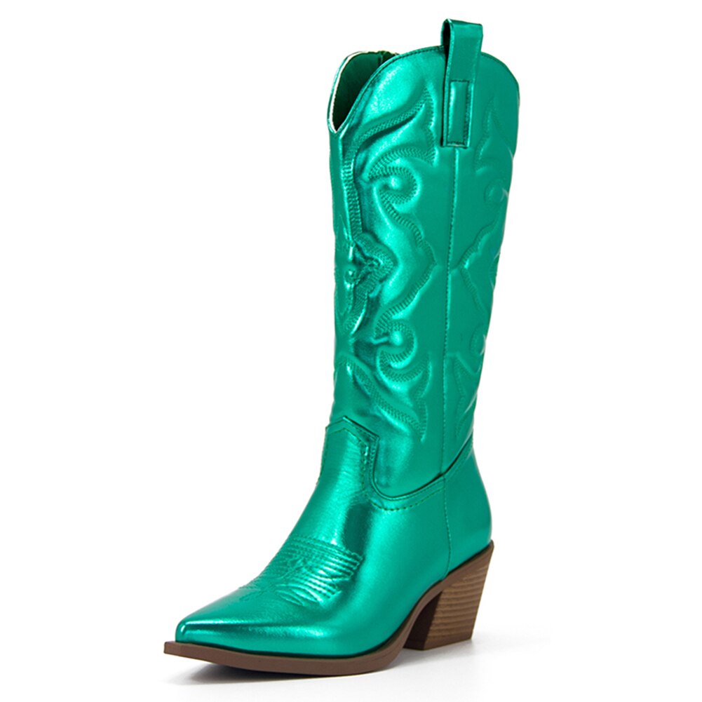 Ashore Western Shop: Hip Cowgirl Boots 2022 Metallic Shiny Pink Cowboy Cowgirl western Boots For Women Zip Embroidered Pointed Toe stacked Heel Mid Calf autumn trendy Boots Shoes