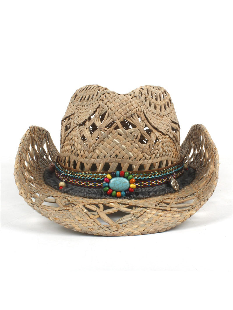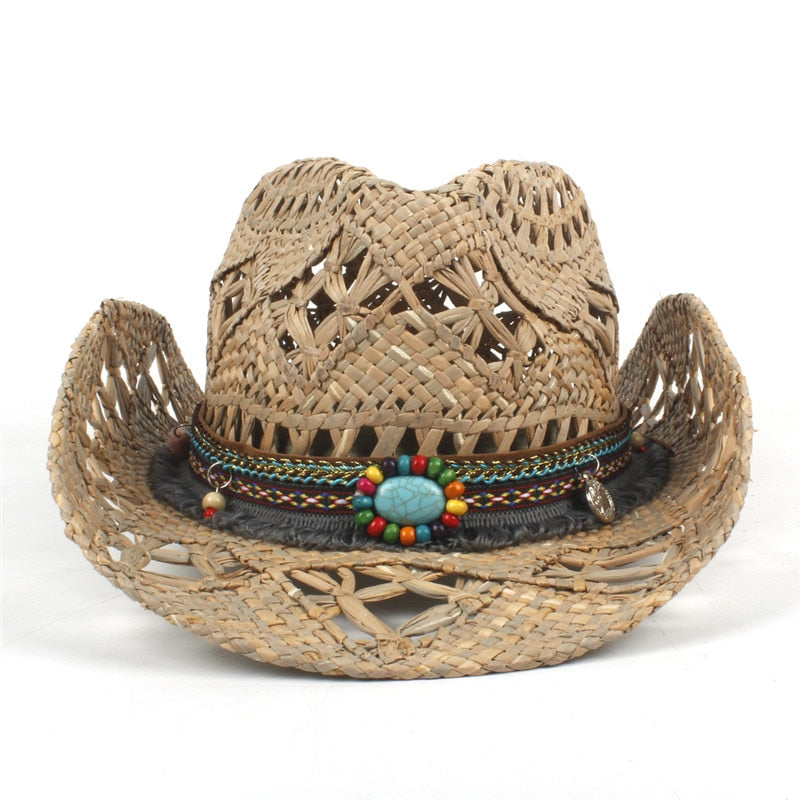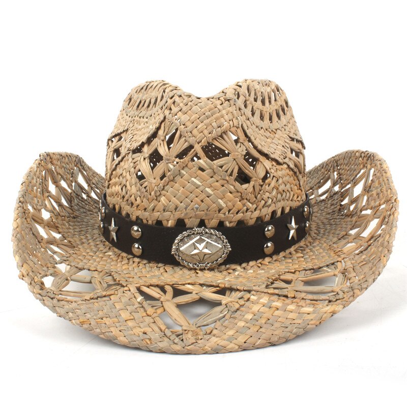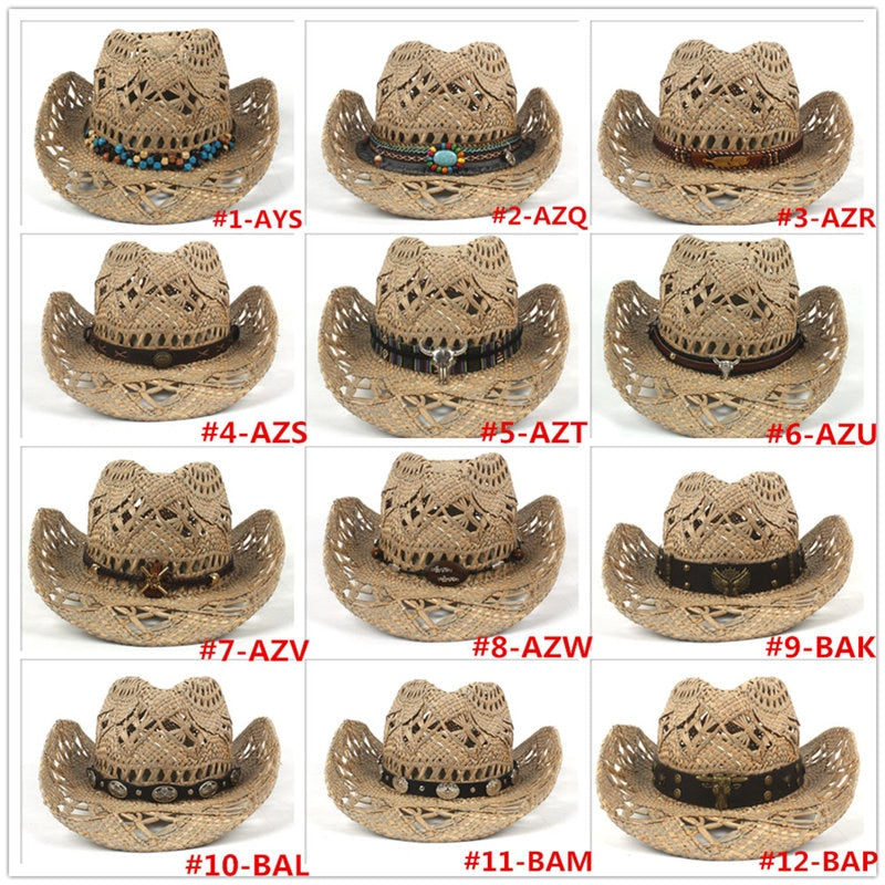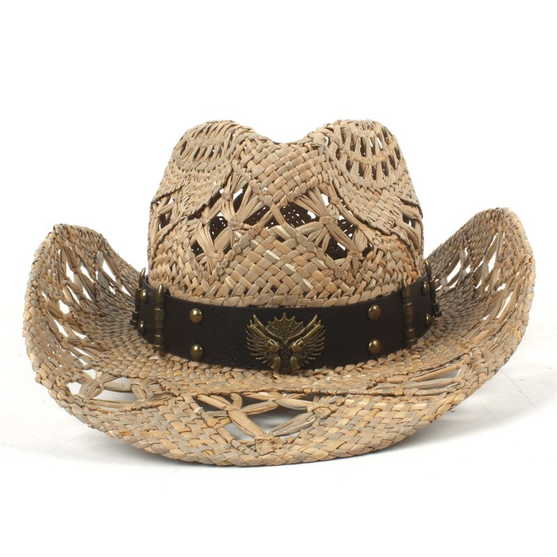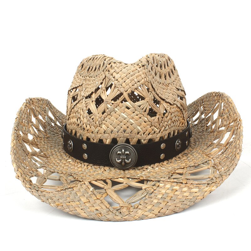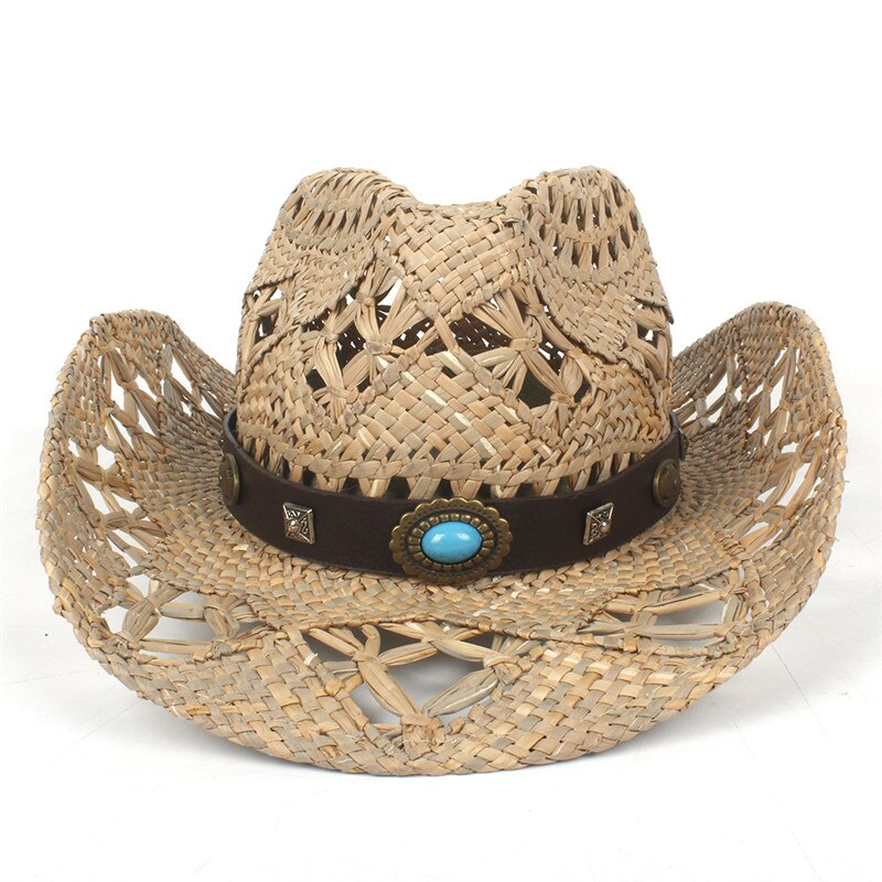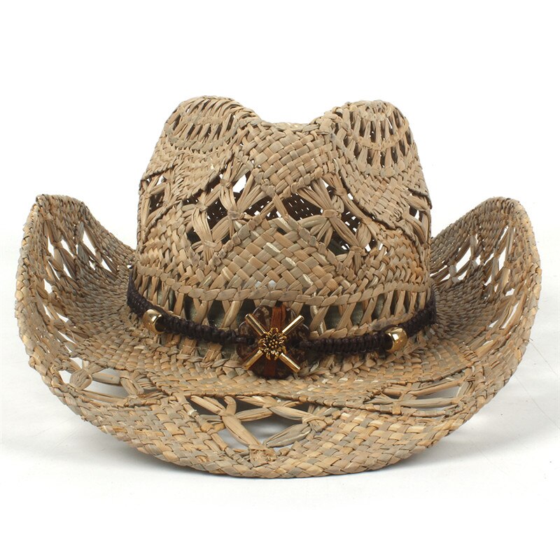 100% Natural Straw Cowboy Hat Women Men Handmade Weave Cowboy Hats