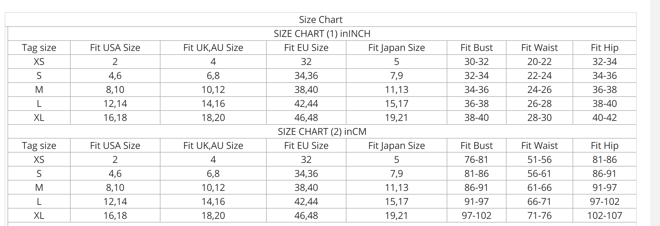 Please See Images for the Size Chart