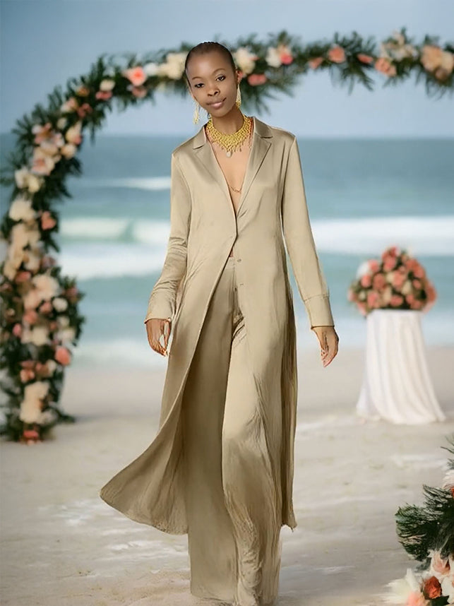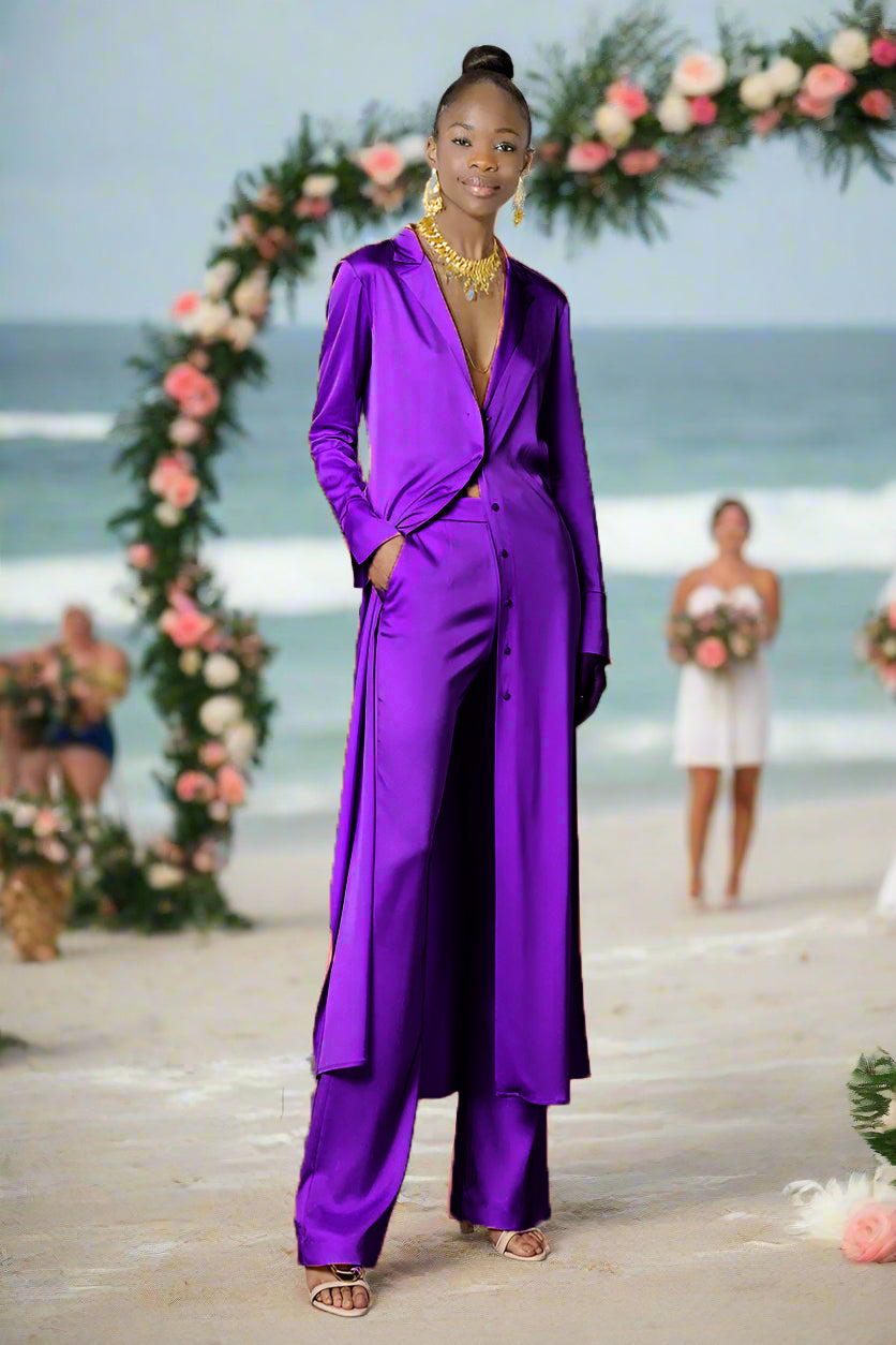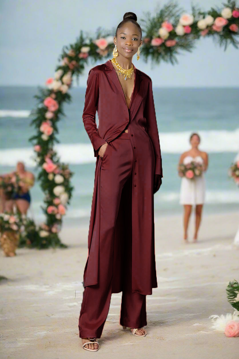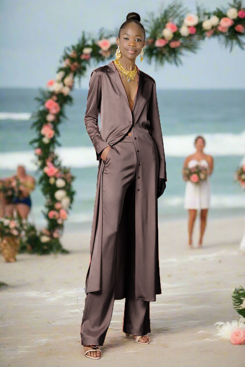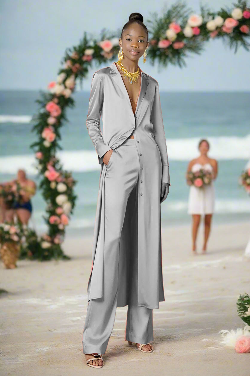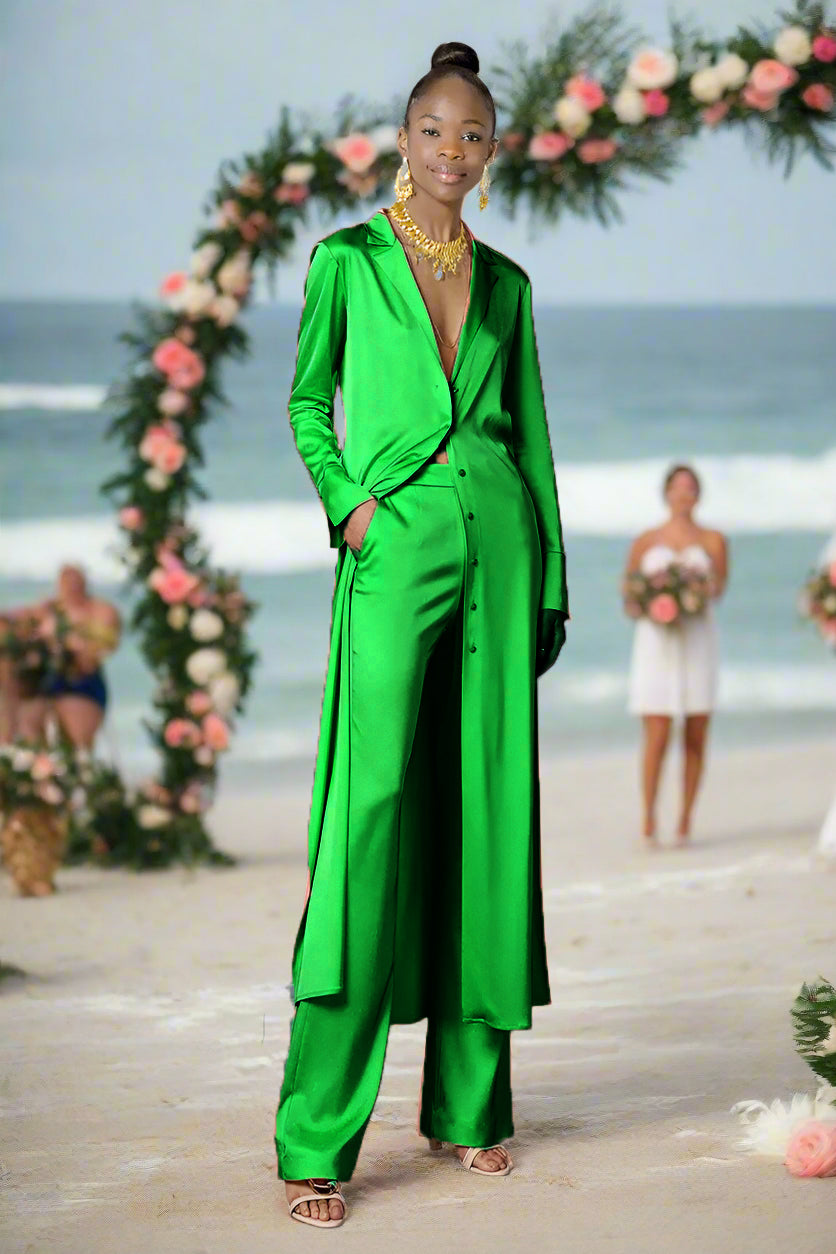 Ashore Long Silk Satin Women's Custom Suit Pants Set-MADE-TO-ORDER-SETS MADE-TO-MEASURE SETS