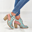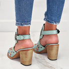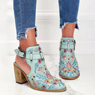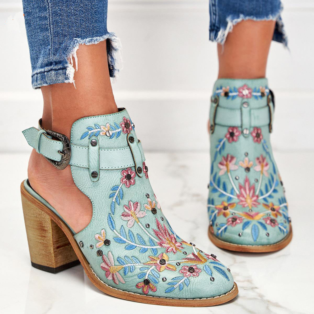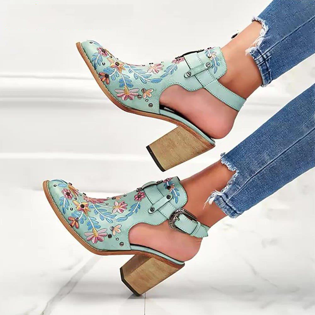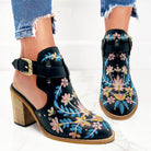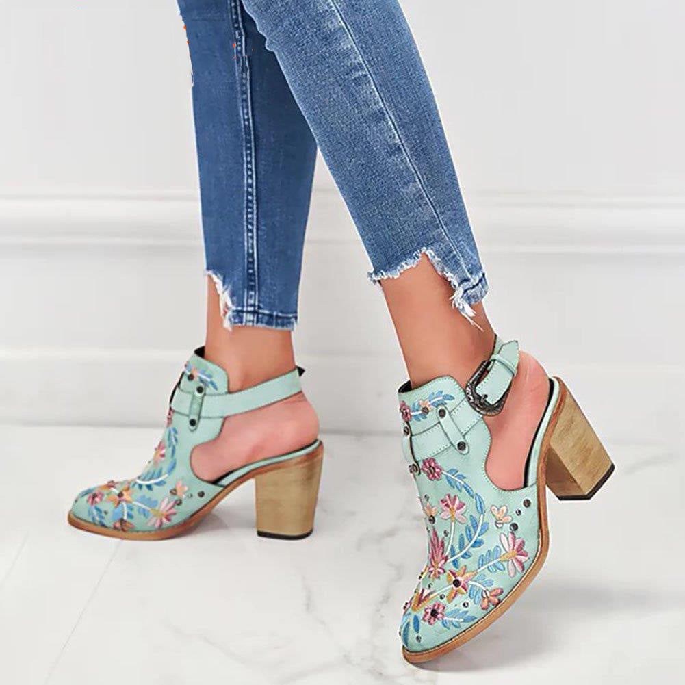 Ashore Shop 2023 New Summer Women Vintage Embroidery Floral Wood Block High Heeled Clog Slingback Sandals Shoes