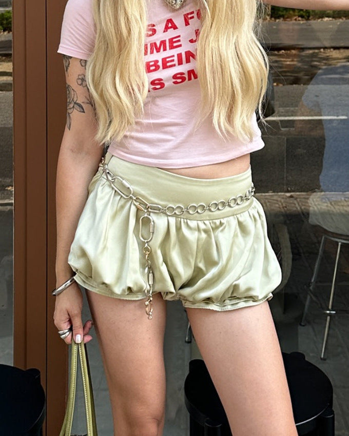 ASHORE Spring Grass Satin Balloon Shorts