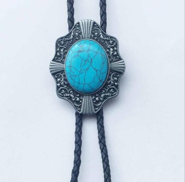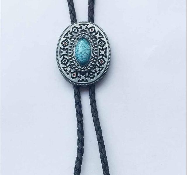 bolo tie Cowboy for men Vintage Indian mens tie Turquoise Europe Long style Zinc Alloy Pendant trendy accessories Llavero bijoux