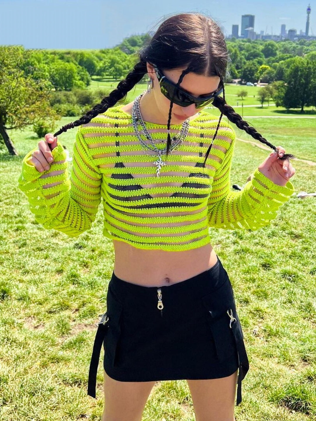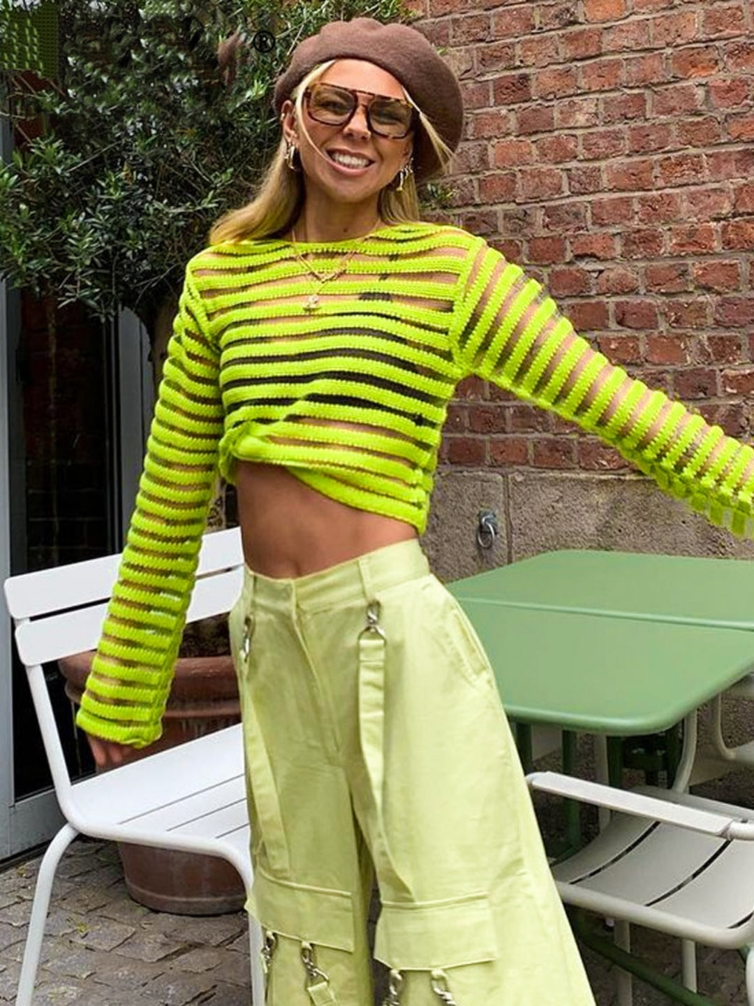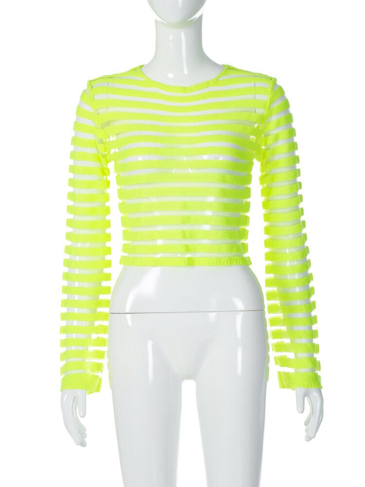 Women Patchwork Knitted Y2K Clothes Long Sleeve Crop Top Vintage Korean Fashion Vacation Streetwear T Shirts